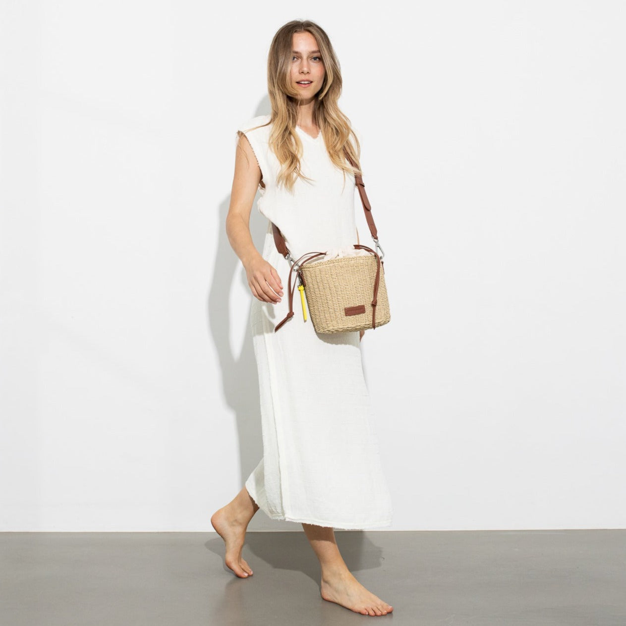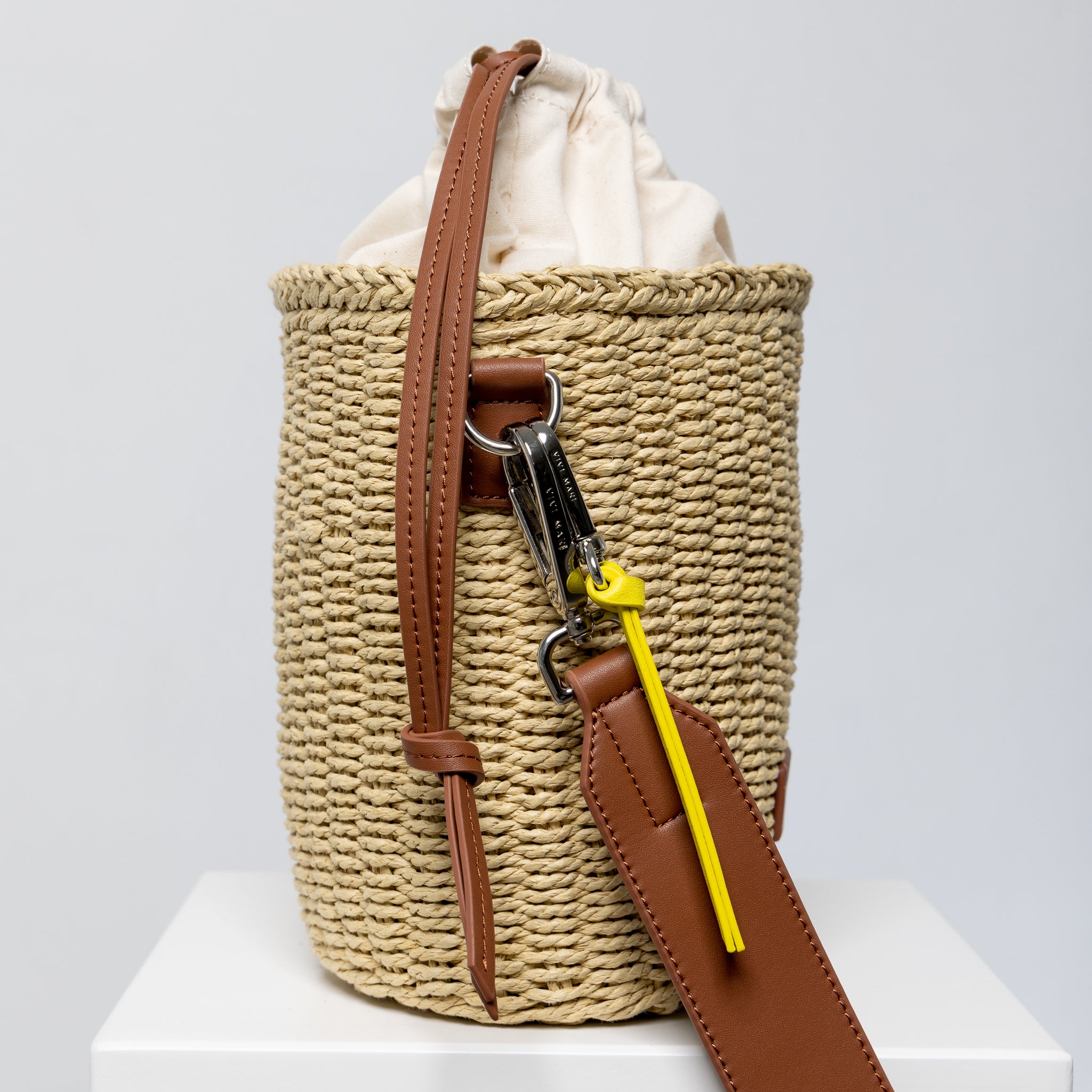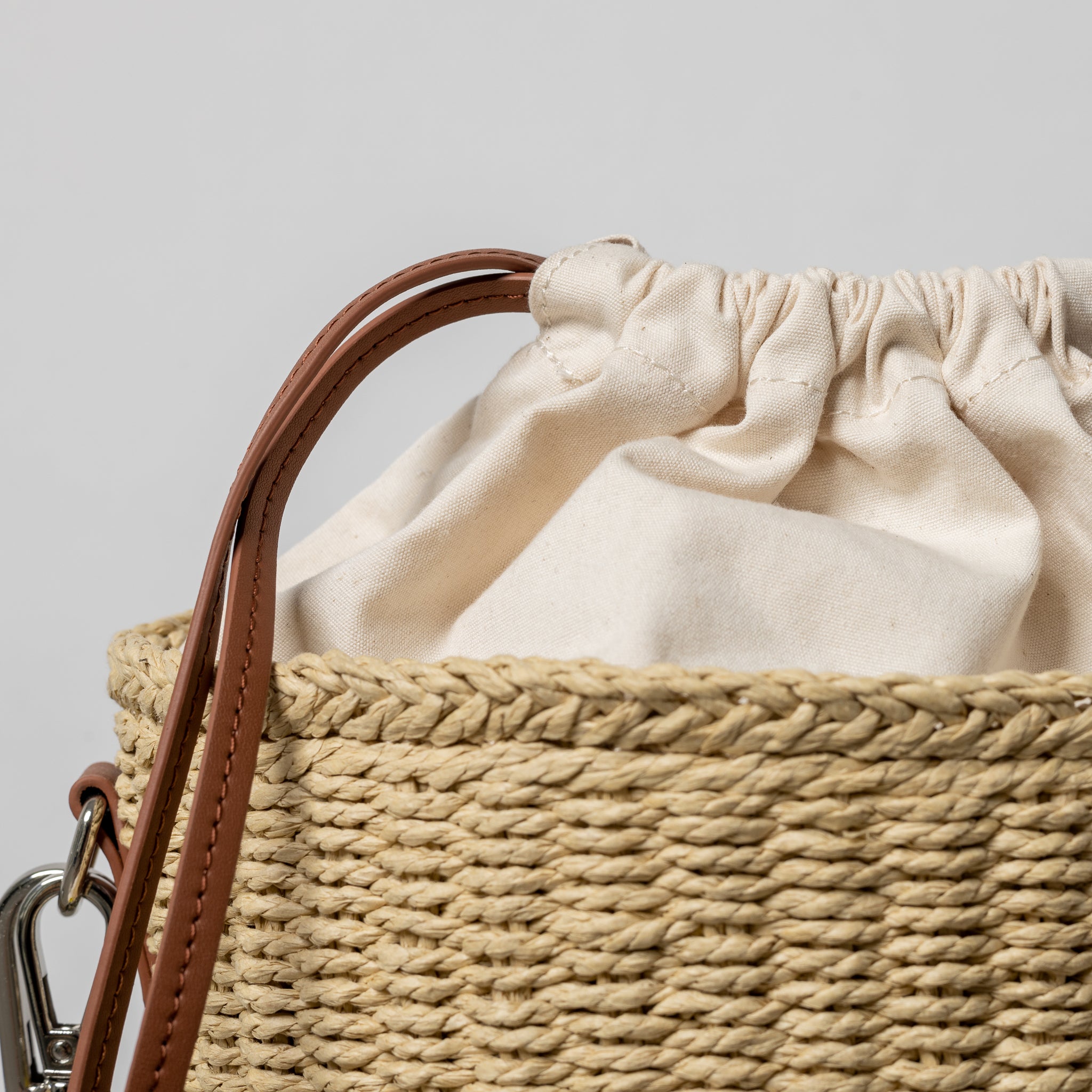 bucket bag straw + strap basic - tan