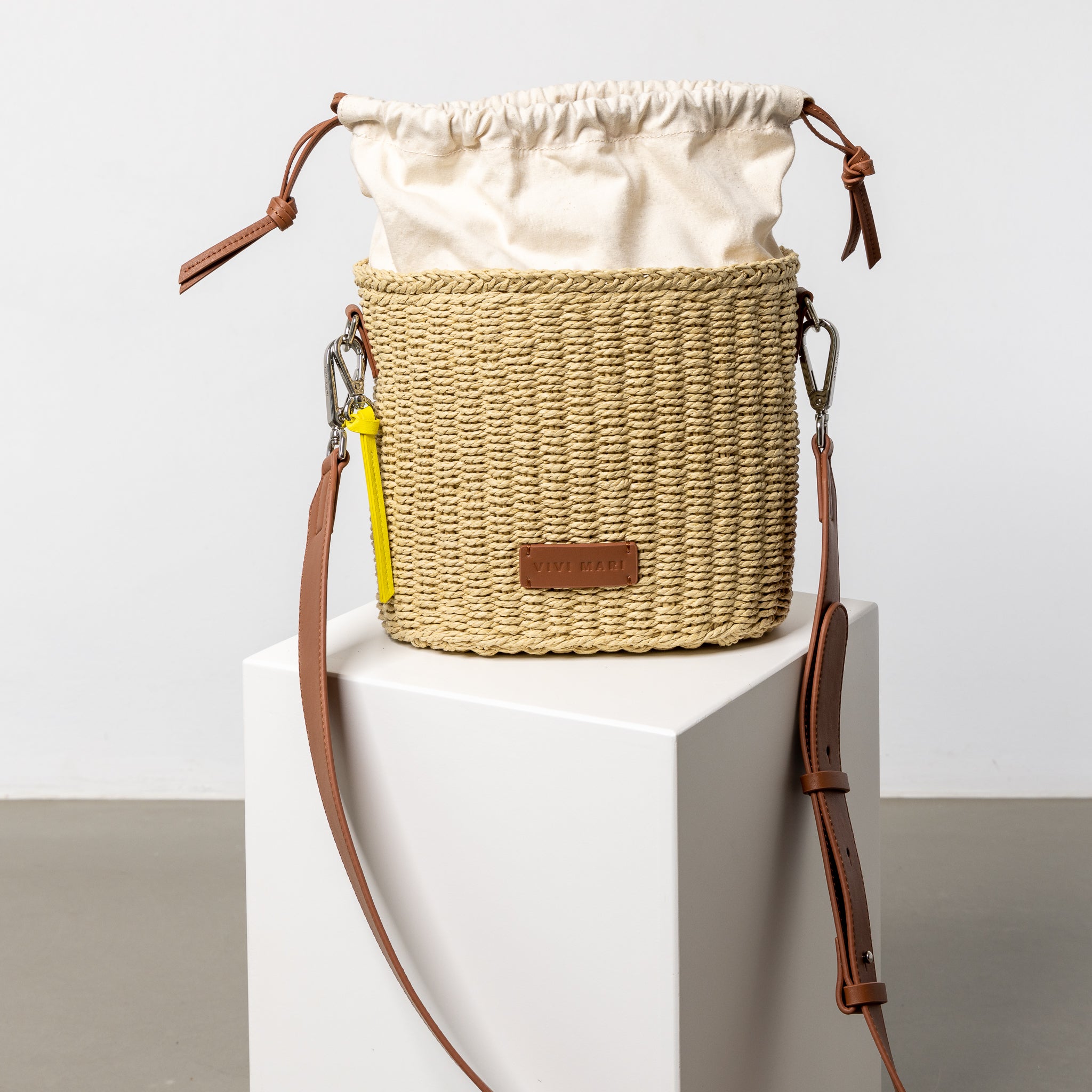 Bucket Bag Straw - tan - VIVI MARI