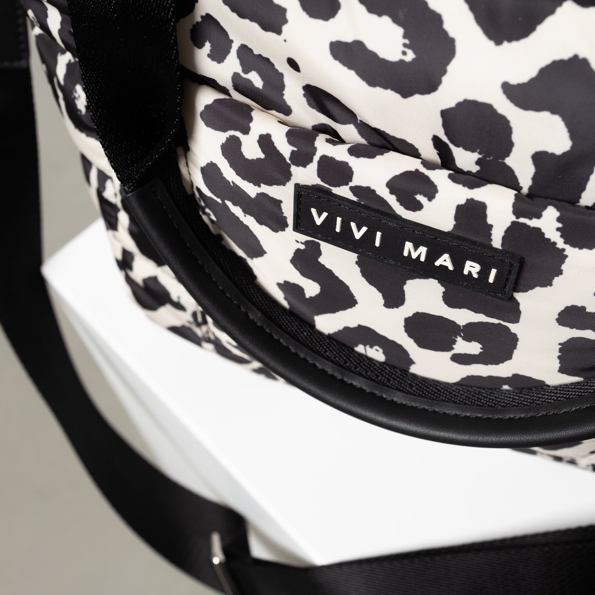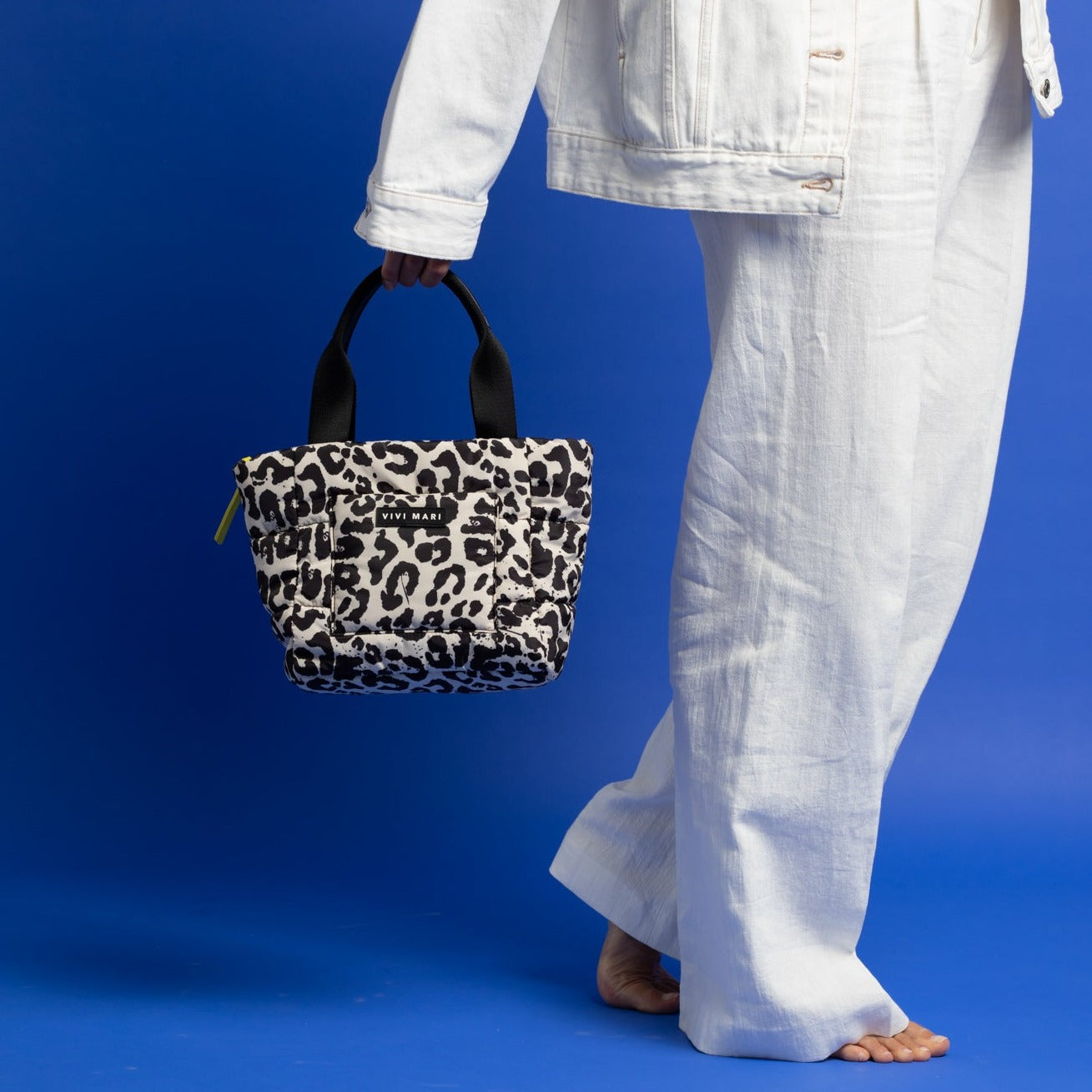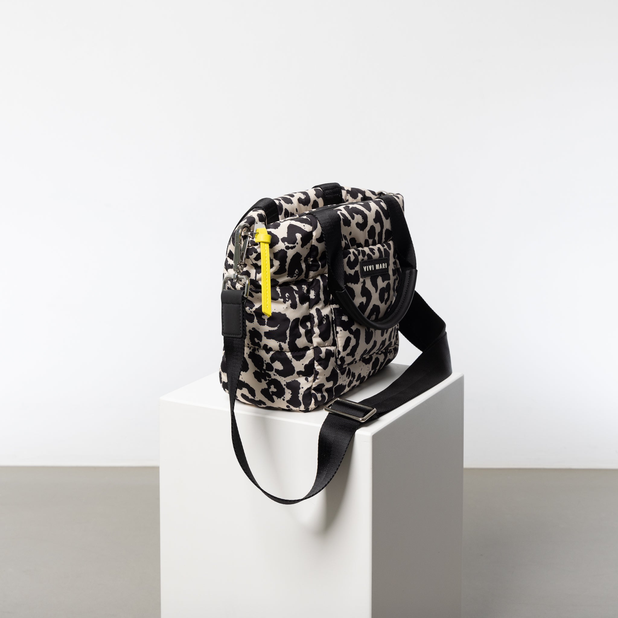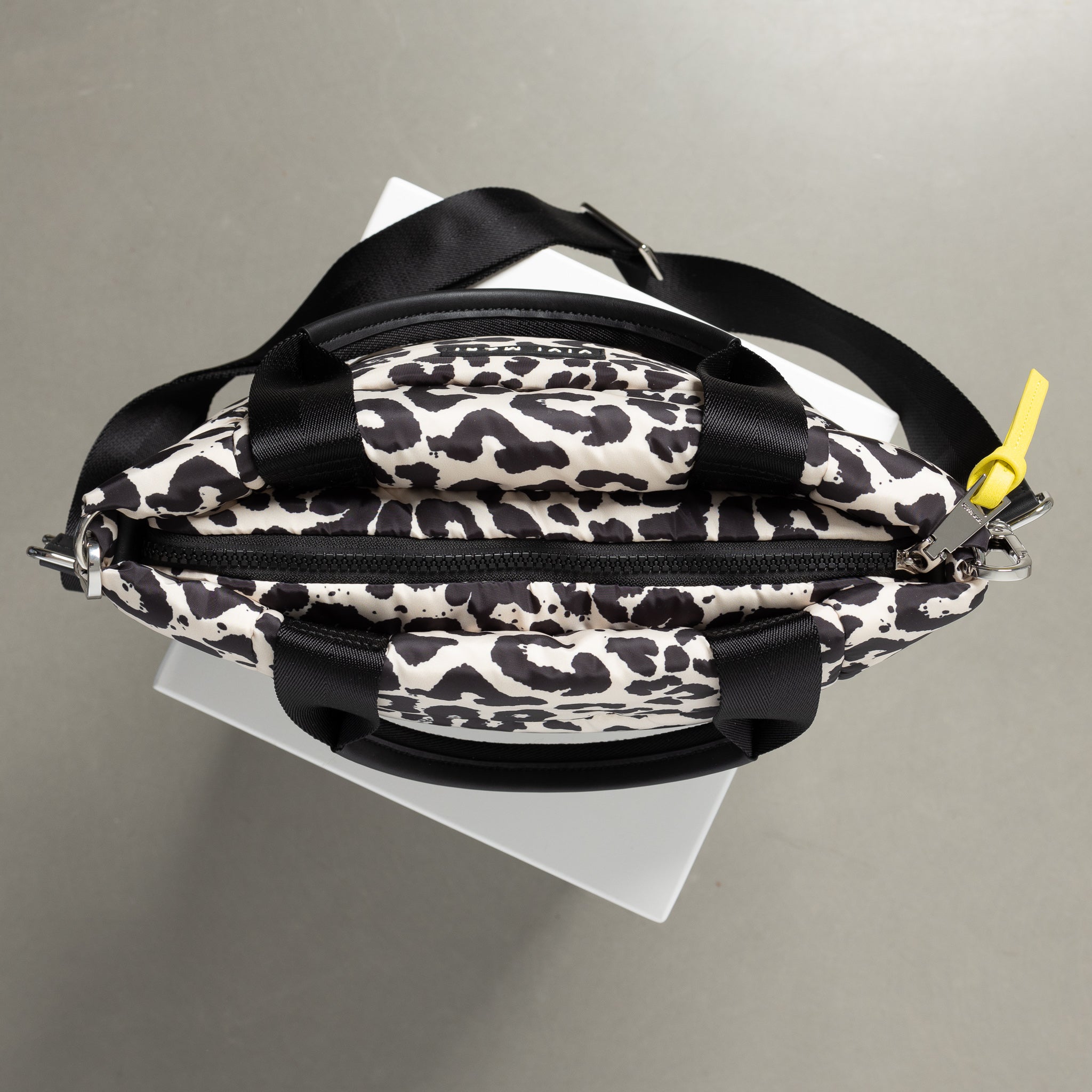 padded tote bag small + strap basic woven slim - leo splashes black/sand