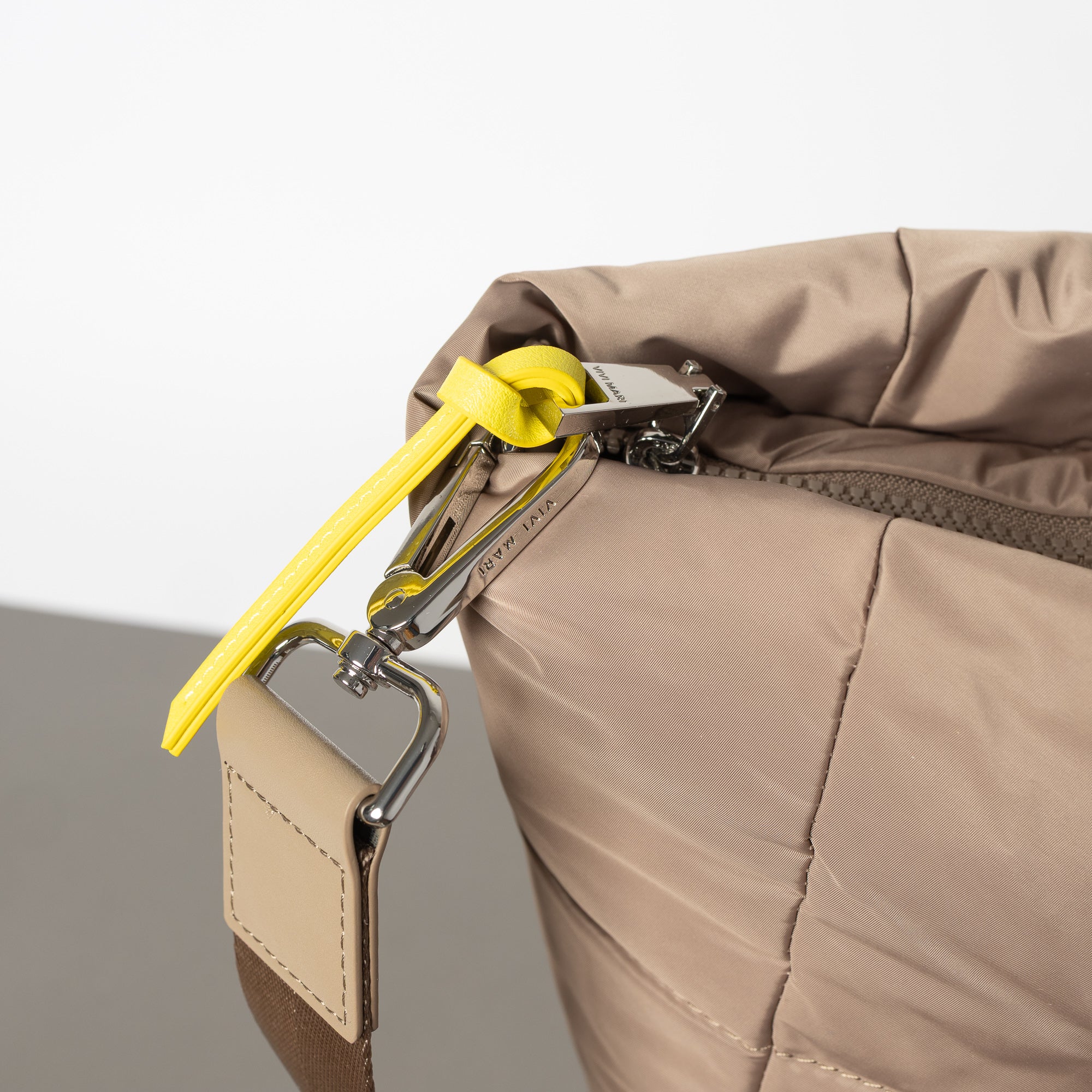 padded tote bag medium + strap basic woven slim - dark mushroom