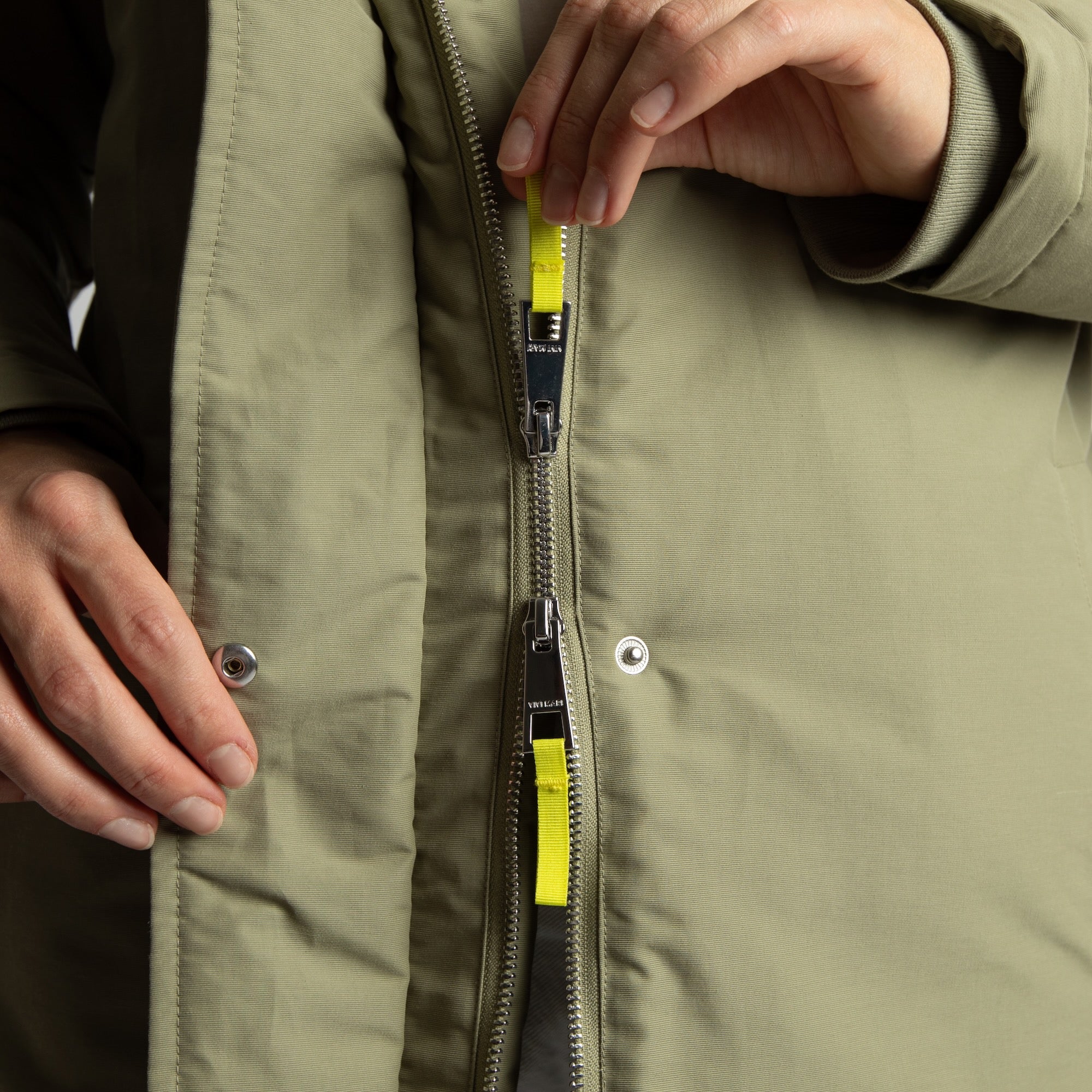 • 2-way zipper and snap button placket